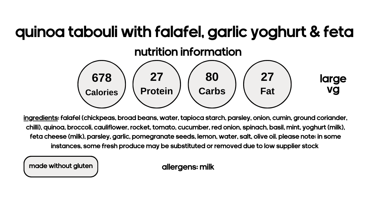 Quinoa Tabouli with Mediterranean Falafel, Garlic Yoghurt & Feta (V)