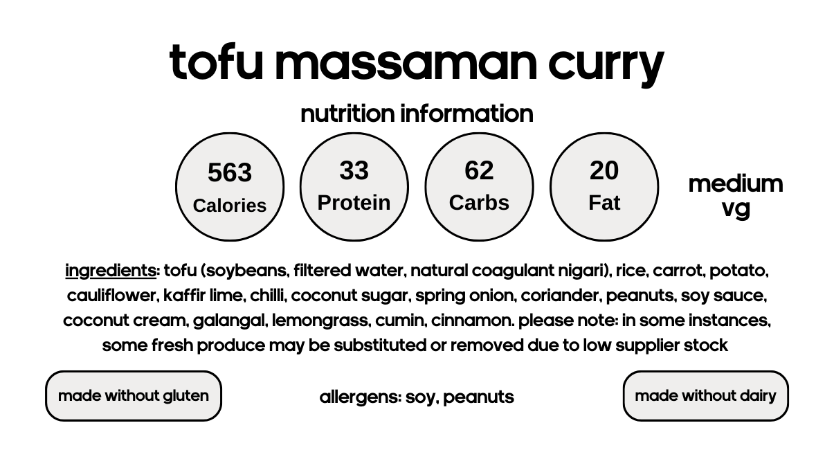Indulge in the savory and rich flavors of our Tofu Massaman Curry. Made with premium tofu and authentic spices, this dish is the perfect balance of meaty and spicy. Savor the tender tofu and aromatic curry for a satisfying meal.